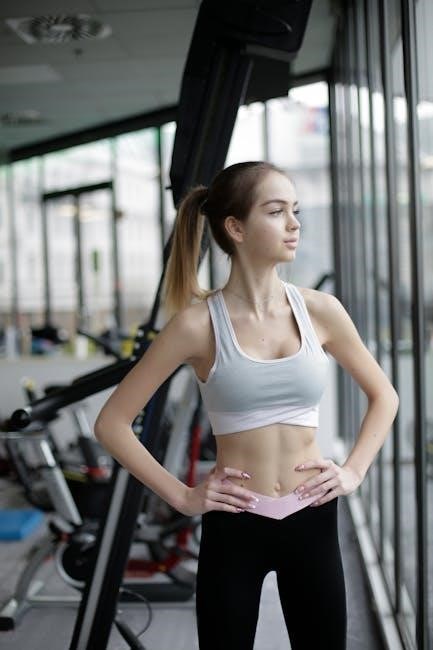 The Confidence Fitness manual emphasizes maintaining correct posture for optimal results and injury prevention․ Keep your back straight, core engaged, and knees slightly bent throughout all exercises․ Avoid locking your joints, as this can lead to strain․ Feet should be shoulder-width apart, and a slight bend in the elbows is recommended during upper body exercises․